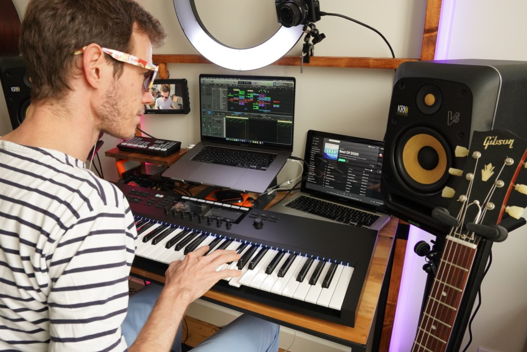 For these ventures, PV makes the magic happen from his new home studio in Nantes, France. Although smaller than his previous space, PV still requires the accuracy and frequency response of a professional studio. This is accomplished with a pair of KRK V-Series 6 Studio Monitors, which he uses for mixing and monitoring. “I’ve been a fan of the Gibson brands for quite a long time now, and I was eager to learn more about KRK,” he shares. “When I decided to build a new home studio, the timing felt perfect. The power of the V6s is perfectly adaptable to my new smaller space. I had a pair of studio monitors that cost four times the price of KRKs when I lived in Paris, and yet their sound quality was not four times better!”